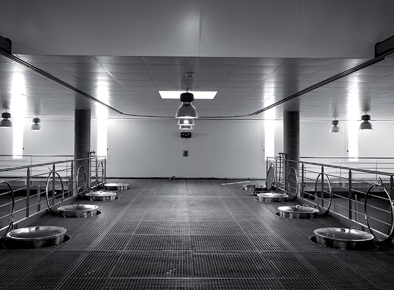 Cuvier gravitaire : Au chai en béton traditionnel s’est rajouté début des années 2000, un nouveau cuvier à transfert de vendange gravitaire contenant plus d’une centaine de cuves inox, selon le vignoble.