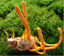 Cordyceps sinensis : Le Cordyceps est un champignon asiatique utilisé depuis de nombreux siècles en Chine et au Tibet. Le Cordyceps sinensis (aussi appelé champignon-chenille) a longtemps été un champignon réservé aux élites. Au Tibet, seul le dalaï-lama en consommait, tandis qu’en Chine, seuls l’empereur et sa cour avaient le droit de profiter de ses vertus. Le cordyceps est en effet un champignon rare mais il est aussi tout à fait singulier : il pousse en parasitant des larves d’insectes. Le mycélium se développe sur la larve, ce qui la tue. Ce n’est qu’ensuite que le champignon développe sa fructification. Cet être unique avait également la réputation d’être un puissant tonique sexuel, et même un tonique général, un peu à l’image du ginseng. En 1757, le cordyceps a été distingué comme une substance médicinale de la pharmacopée chinoise, avec des indications plus larges : protection des poumons et des reins, interruption des hémorragies et réduction des crises d’asthme. Depuis ce temps-là, et alors qu’on développait la culture du Cordyceps sur de la paille de riz, de nombreuses études ont vu le jour, surtout ces dernières décennies, en Chine, au Japon et aussi aux États-Unis.