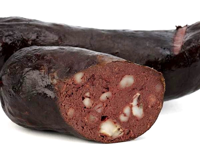 Il s’agit d’une saucisse fourrée sans viande, surtout farcie de sang et de graisse de porc (saindoux) et de farine ou de riz, et donc par la présence de sang présente une couleur foncée.