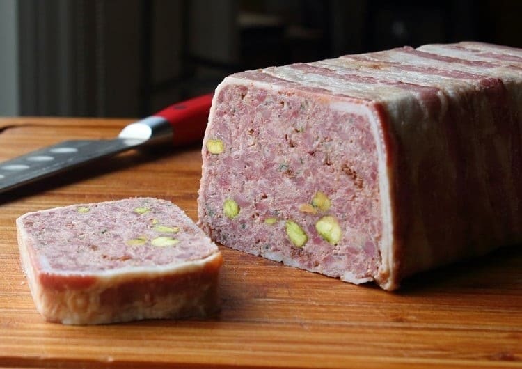 En charcuterie, il est généralement fait d'un mélange finement haché (appelé mêlée) de morceaux de la viande ou d'abats (comme le foie), de gras, de légumes, d'œufs, d'herbes aromatiques, d'épices ainsi que d'autres ingrédients, tels que parfois des alcools comme le cognac.