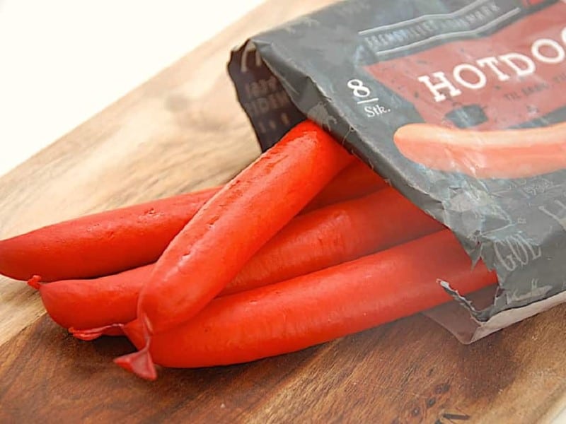 Rød pølse (charcuterie danoise) : La Rød pølse (saucisse rouge) est un type de saucisse de porc bouillie rouge vif très courante au Danemark. Étant donné que les stands de hot-dogs sont omniprésents au Danemark, certaines personnes considèrent le røde pølser comme l’un des plats nationaux. Ils sont de type viennois et la peau est colorée avec un colorant rouge traditionnel carmin.
