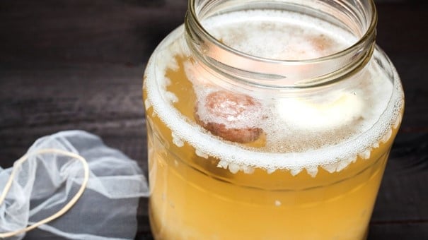 Le kéfir (anciennement képhir) est une boisson issue de la fermentation du lait ou de jus de fruits sucrés, préparés à l’aide de « grains de kéfir », un levain constitué essentiellement de bactéries lactiques et de levures.