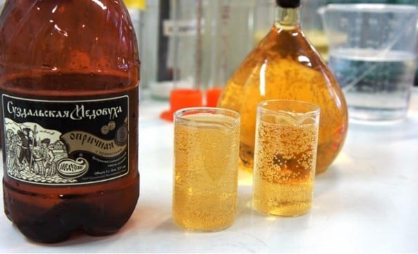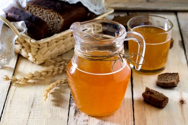 Le kvas : boisson pétillante aigre-douce et légèrement alcoolisée (2,2%), issue de la fermentation naturelle de pains séchés de blé, d’orge ou de seigle, de levure et de sucre, parfois parfumée aux fruits ou à la menthe.