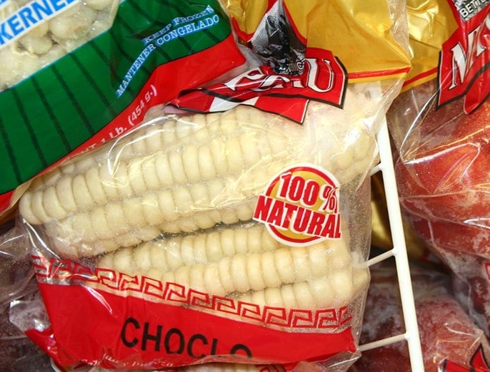 Le choclo est utilisé dans la fabrication des humitas en Bolivie, du choclo arepas en Colombie et pour le pastel de choclo. Le maïs péruvien est souvent de couleur blanche.