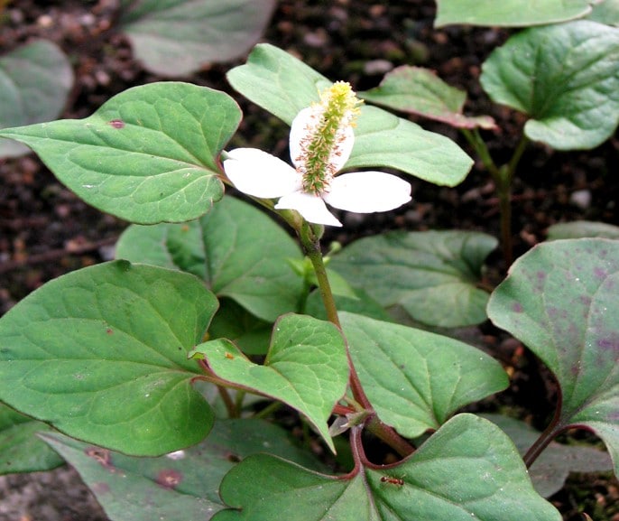 Culture : L’Houttuynia cordata pousse dans un sol humide à humide ou légèrement submergé dans l’eau, à condition qu’il soit exposé partiellement ou totalement au soleil. Il peut devenir envahissant dans les jardins et difficile à éradiquer car leurs racines sont profondes et se propagent activement. Il se propage par division.