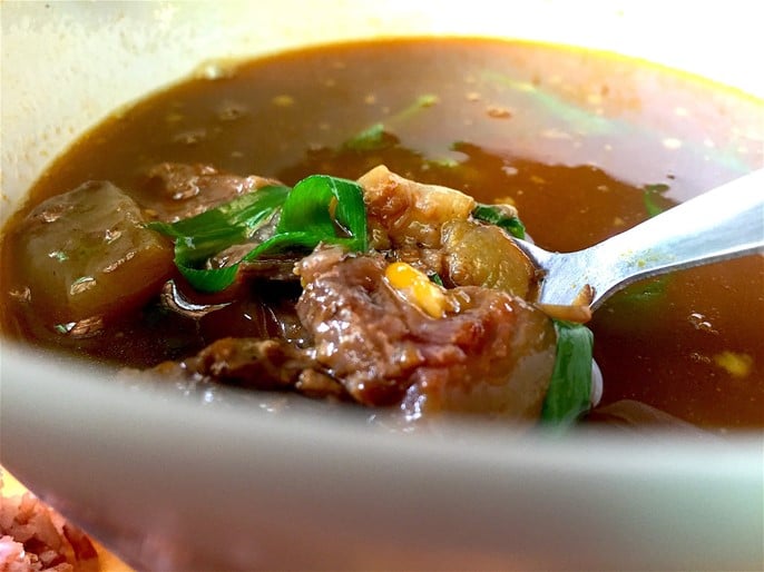 Balbacua Balbacua (cuisine philippine) : Le balbacua est un ragoût de bœuf philippin à base de viande de bœuf, avec ou sans os, de parties de bœuf riches en collagène (queue de bœuf, peau et cartilage) et de diverses épices cuites pendant plusieurs heures jusqu'à ce qu'elles soient très tendres. Ce plat typique de Philippines est généralement servi avec du riz blanc ou misua ou des nouilles au riz ou des nouilles pancitLe balbacua est originaire des régions Visayan des îles Visayas et Mindanao e...