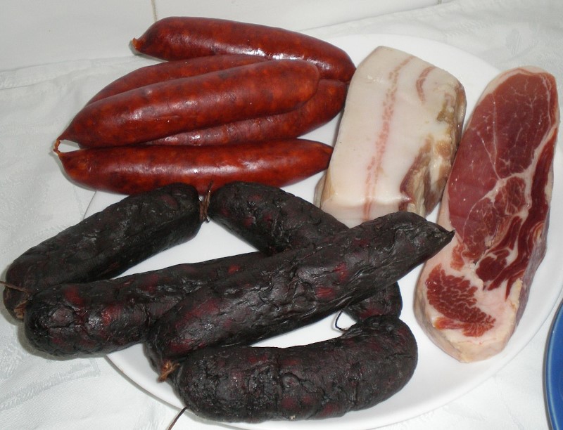 Lacòn : Il s’agit d’un boudin frais à base de suif de bœuf et de sang de bœuf, contrairement au boudin traditionnel à base de sang de porc. Il est normalement utilisé dans le compango du ragoût de pois chiches.
