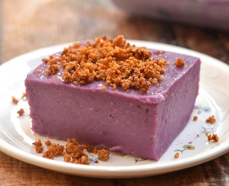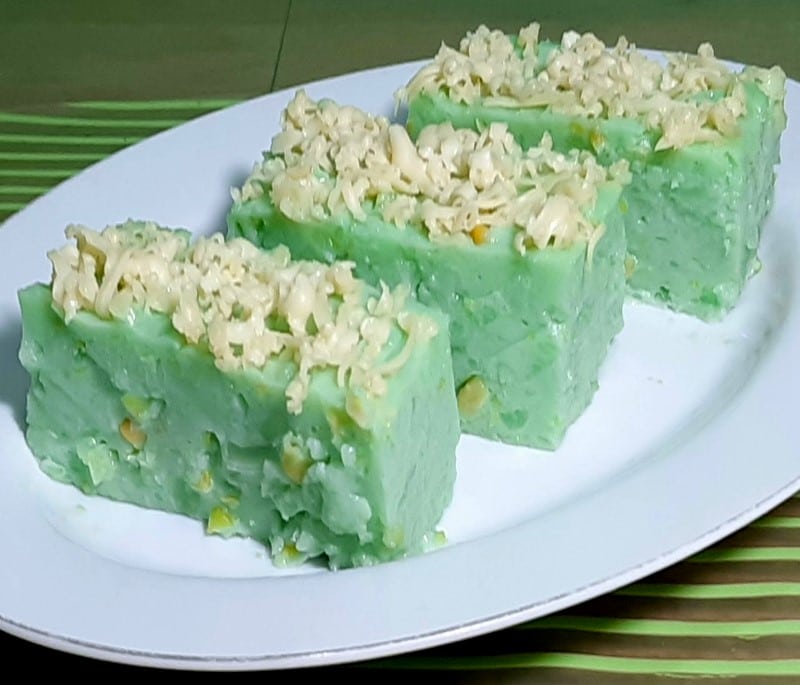 Variantes : Différentes variantes de maja blanca, y compris le fromage, l’ube, le pandanus et le maïs.