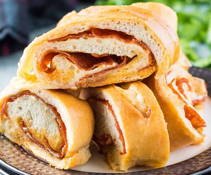 Variantes : Les variantes du rouleau de pepperoni original peuvent contenir différents types de fromage, de poivrons ou d’autres ingrédients.