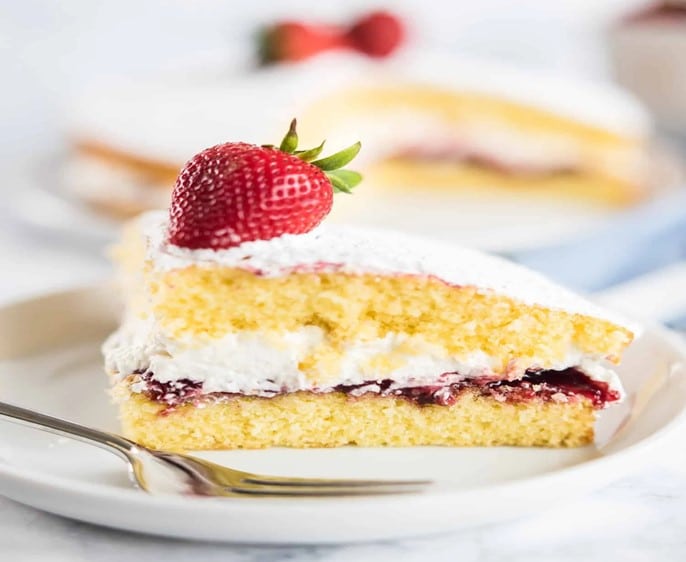 Recette du Victoria Sponge Cake : Un véritable Victoria Sponge Cake consiste en une confiture de framboises et de la crème à la vanille, insérées entre deux couches de génoise. La recette du gâteau est la même que celle d’un sponge cake classique ; ici, il faut juste réaliser une crème au beurre vanillée.