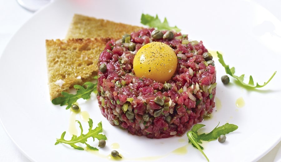 Elle est servie et consommée crue après avoir été condimentée de câpres, d’oignons et de cornichons finement ciselés, de persil haché, de sauce ketchup, de moutarde e...