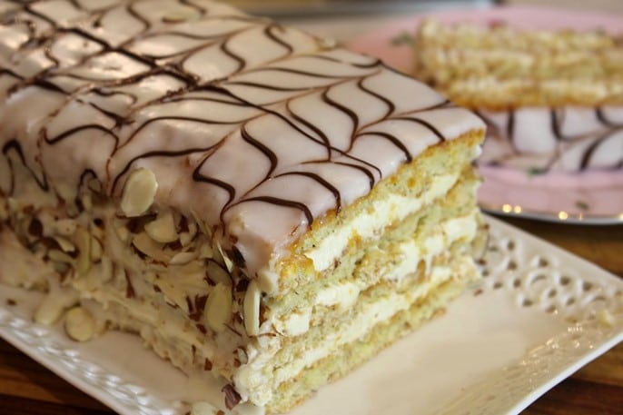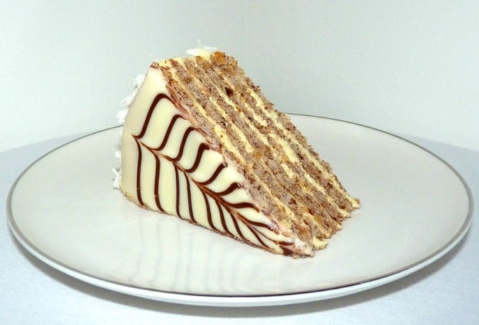 La Schnitten Esterházy : Une variante populaire, bien que pas originaire d’Hongrie, est la Schnitten Esterházy. Tandis que la torta est généralement toujours de forme ronde, la Schnitten Esterházy est de forme carrée.