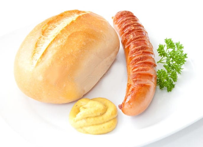 Petit-pain, Bockwurst grillée et moutarde allemande