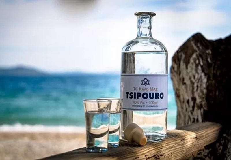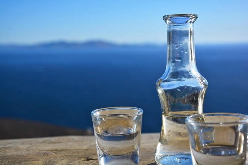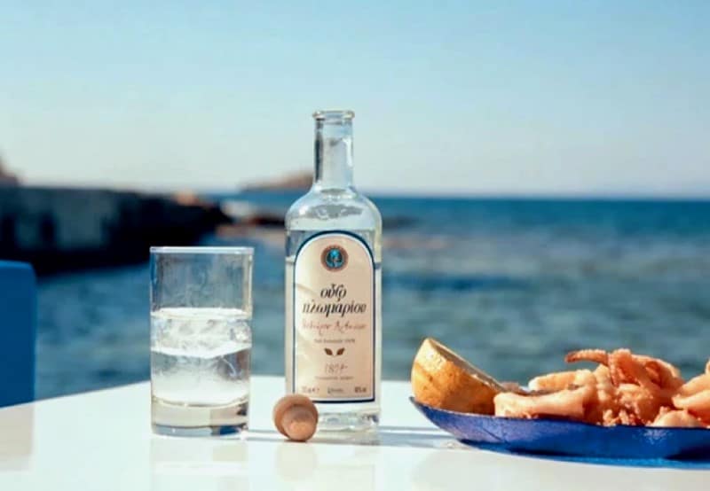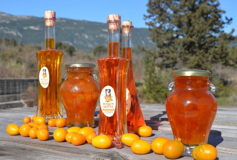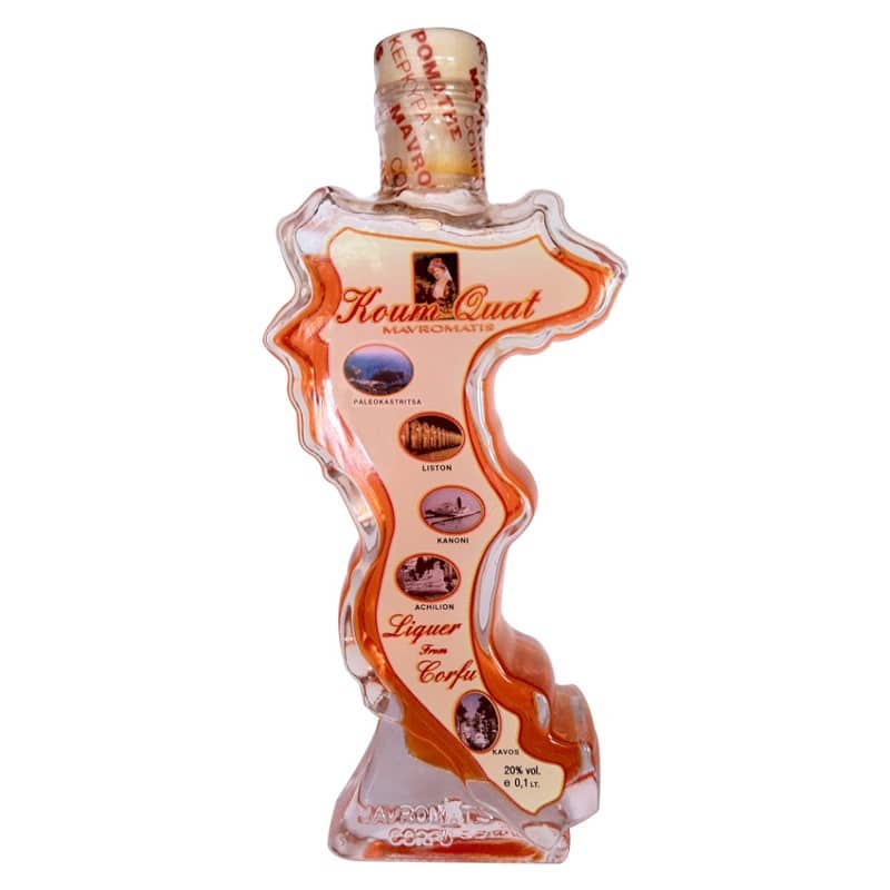 Liqueur de Koum Quat dans un bouteille représentant l’île de Corfou
