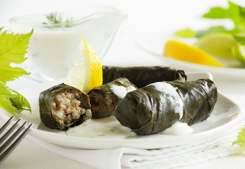 Japrakë (feuilles de vigne fourrées à la viand et au riz)