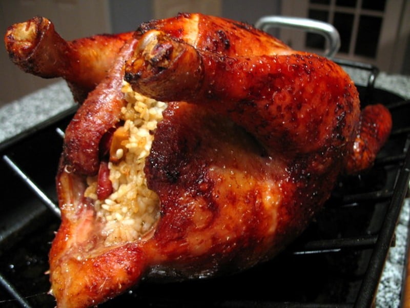 Poulet rôti farci au riz