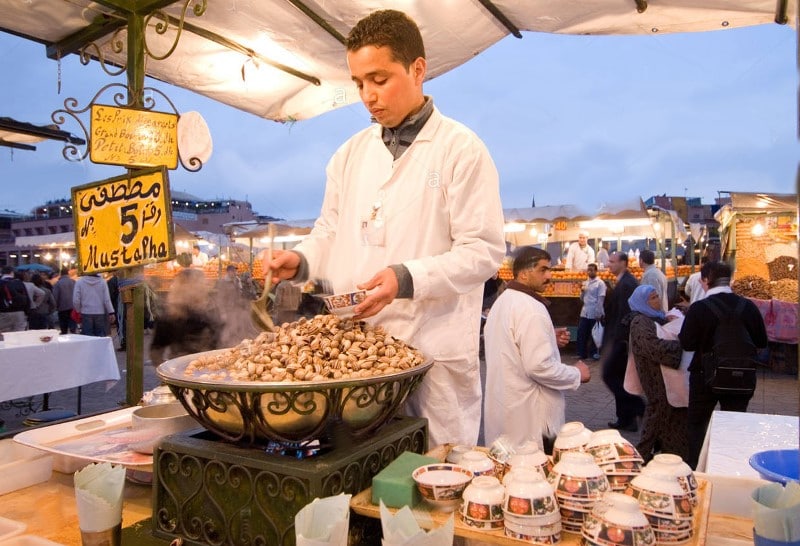 Vendeur d’escargots sur la place Jemaa el-Fna à Marrakech