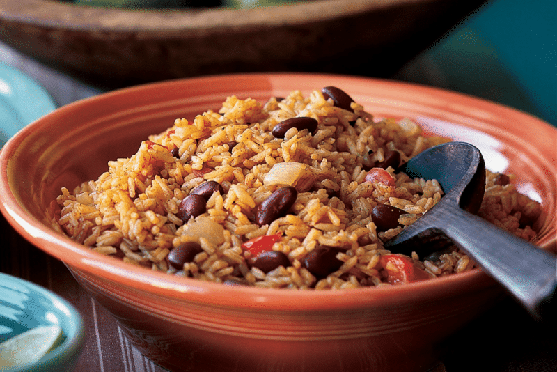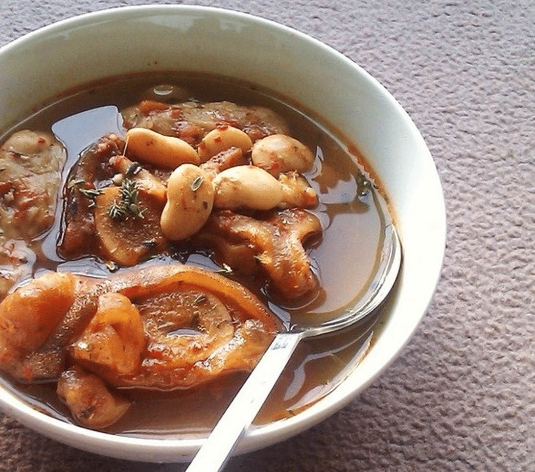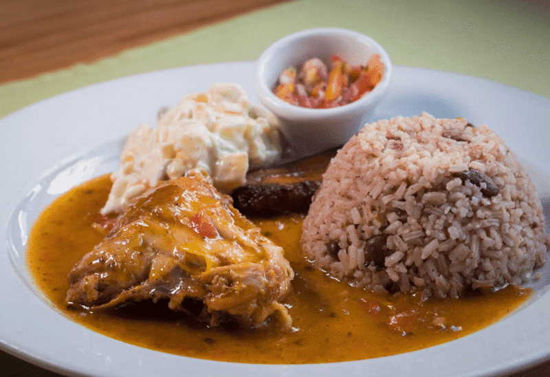 Soupe de conque dans sa coque et riz aux haricots du Belize