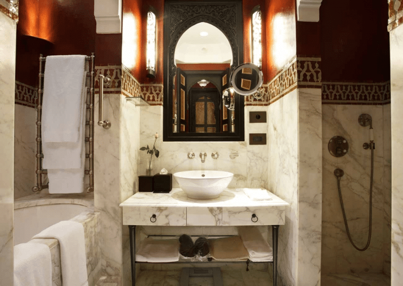 Petit-déjeuner sur la terrasse d’une chambre de la Mamounia