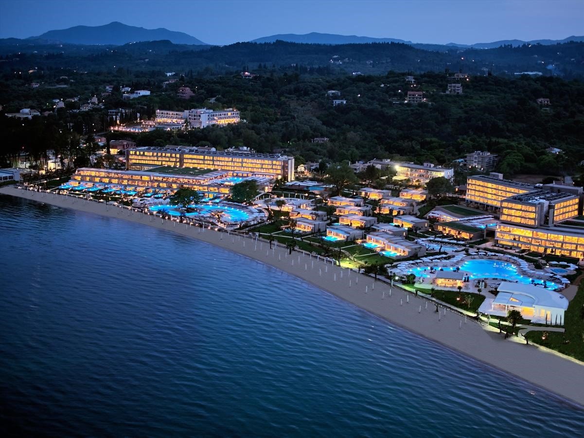 Une des piscines de l’hôtel Ikos Dassia le soir