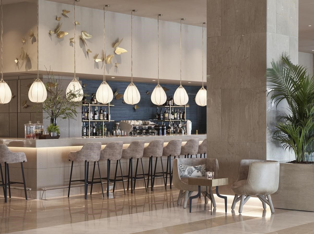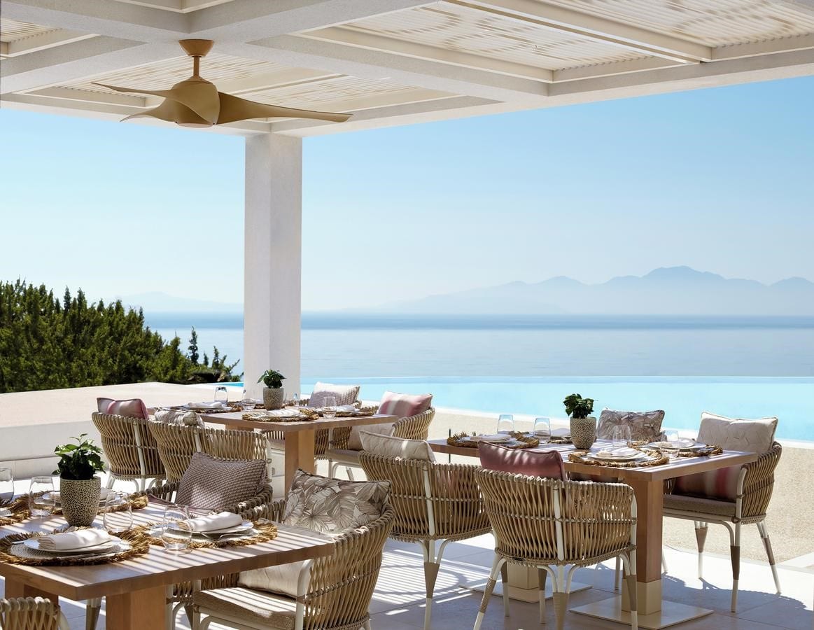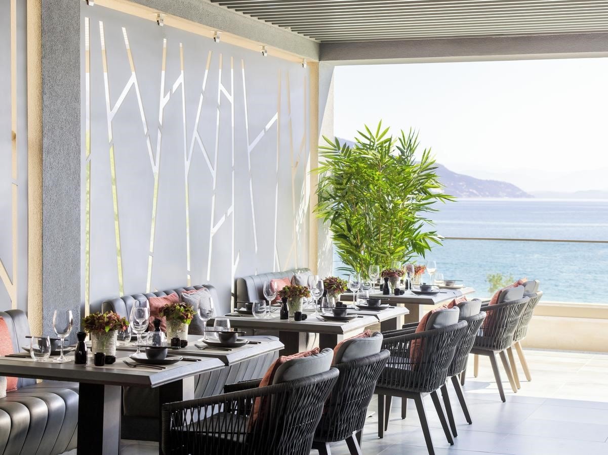 Terrasse d’un des restaurants de l’hôtel Ikos Aria