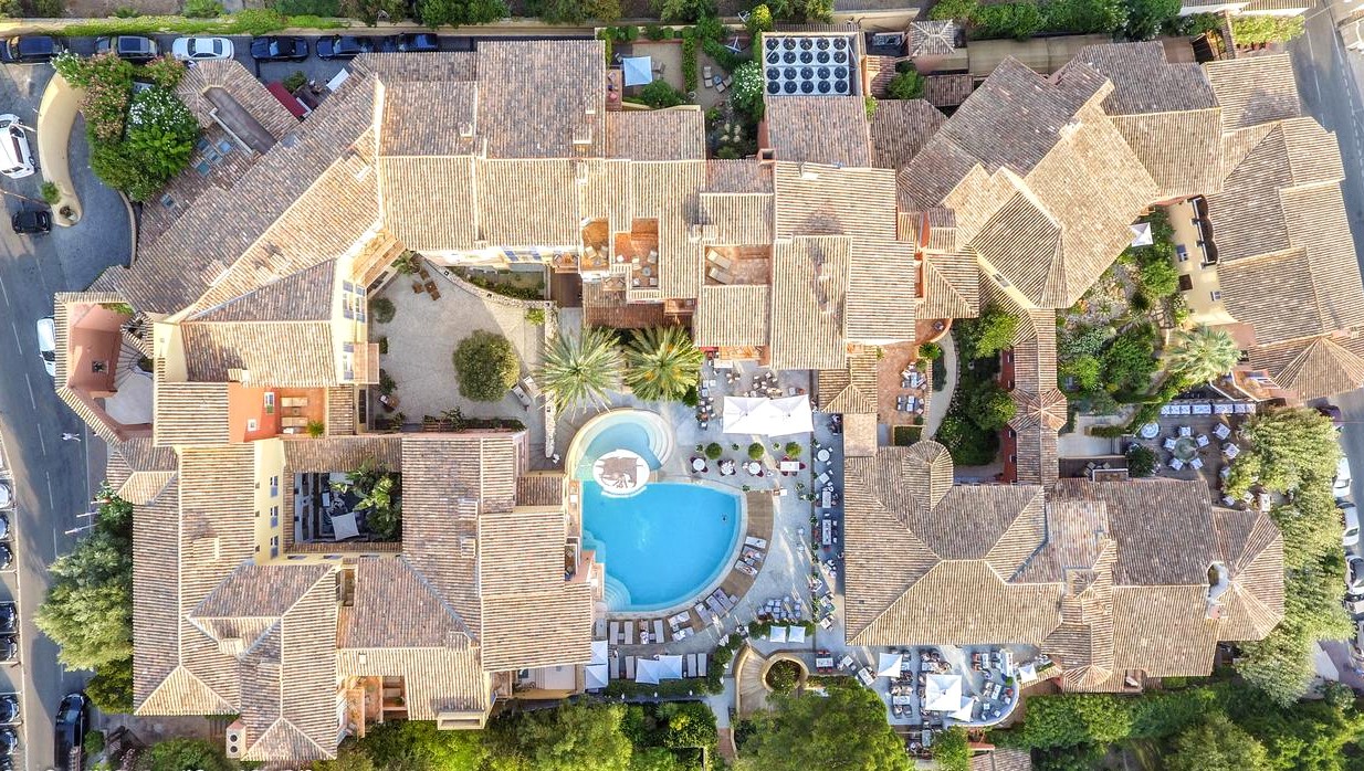 Vue aérienne de l’hôtel Le Byblos à Saint-Tropez