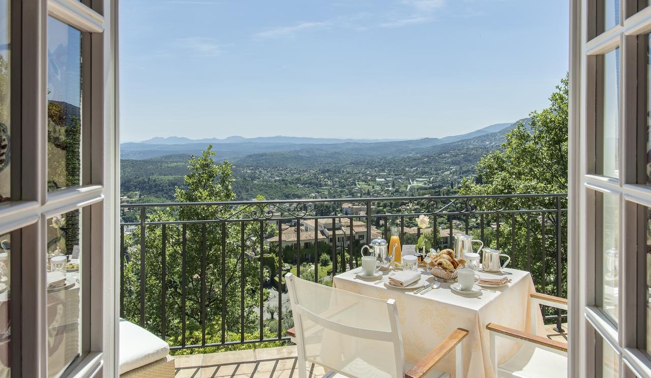 Petit-déjeuner sur la terrasse d’une chambre du Château Saint-Martin & Spa