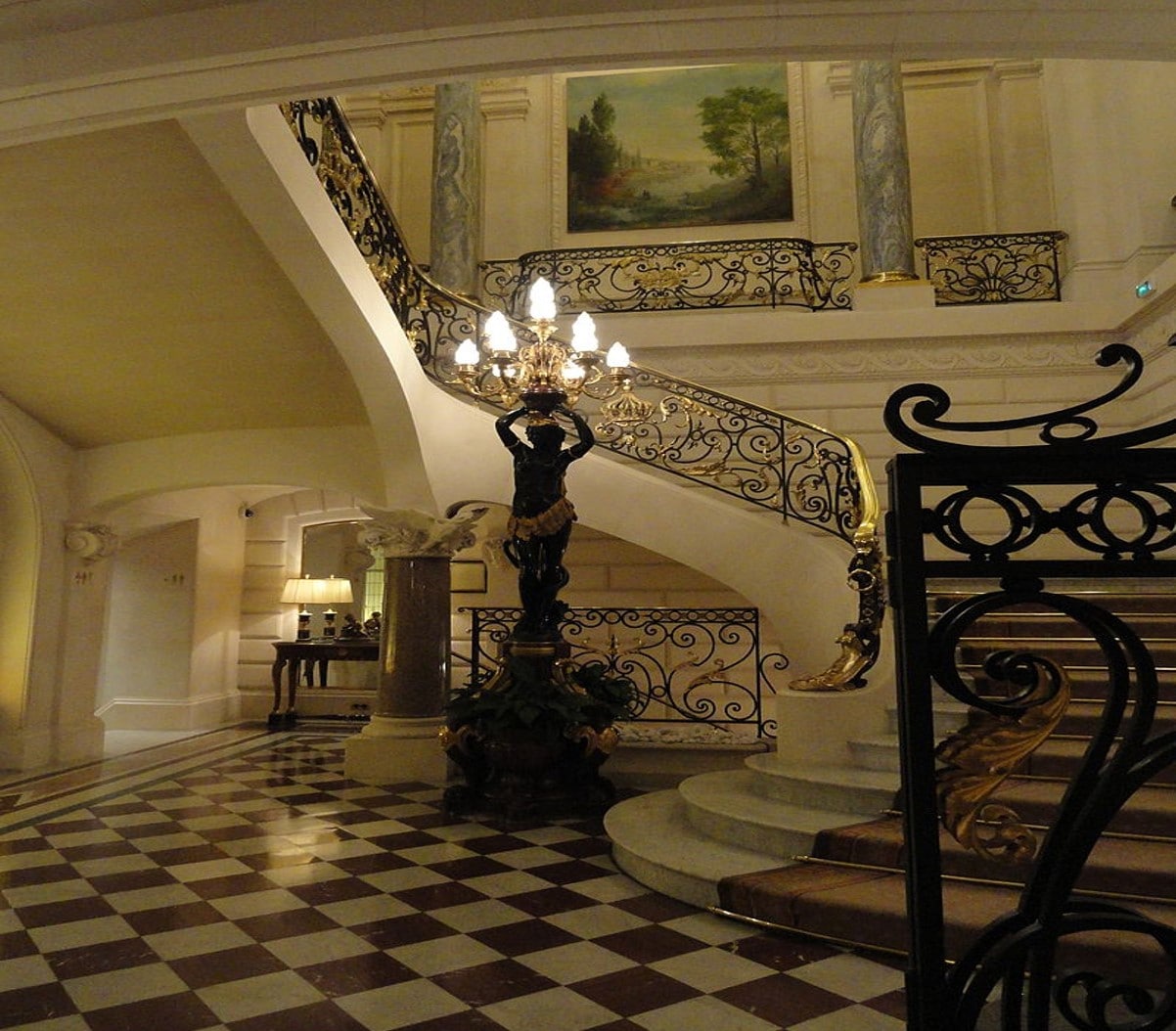 Un des majestueux escaliers du Shangri-La Hotel Paris