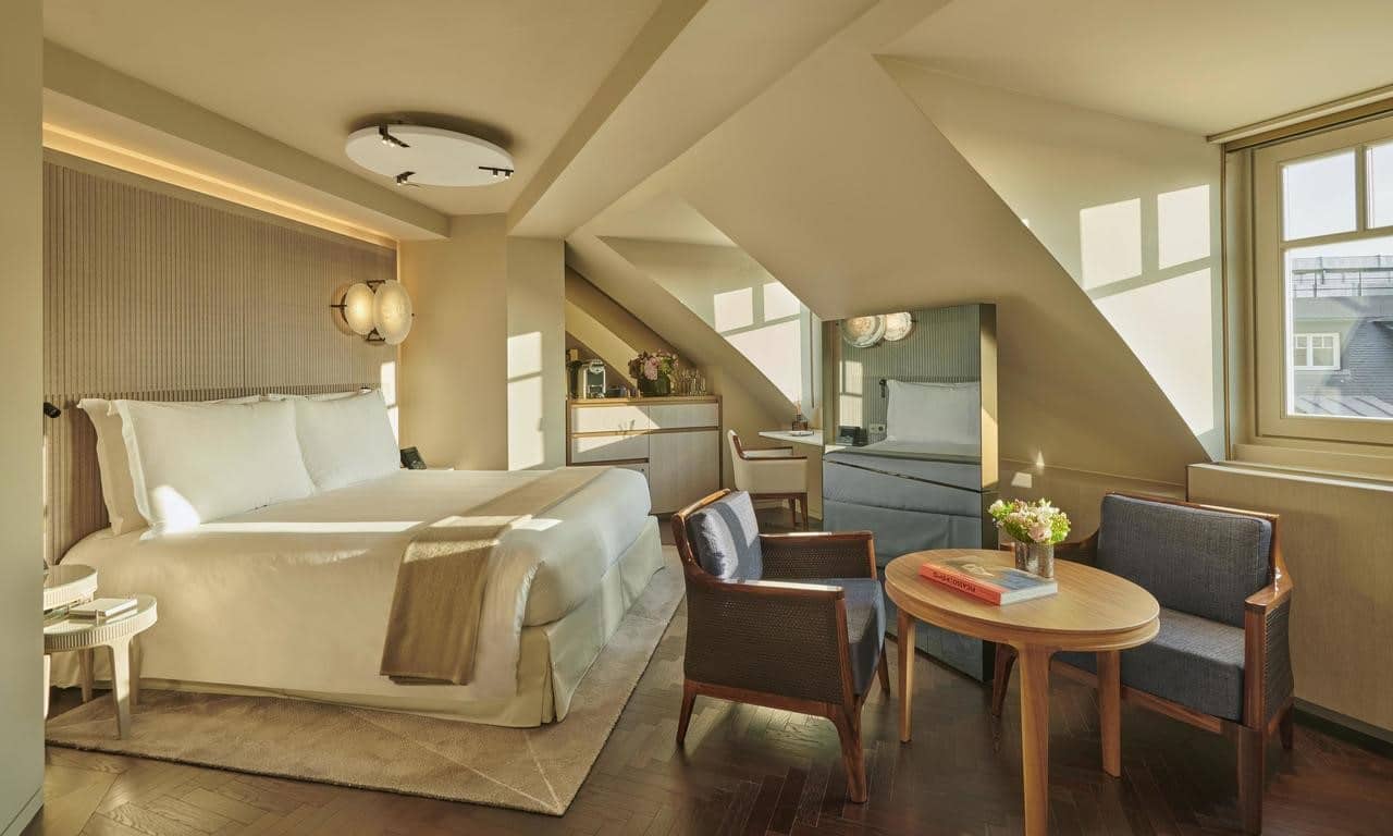 Le coin salon d’une chambre de l’hôtel Lutetia