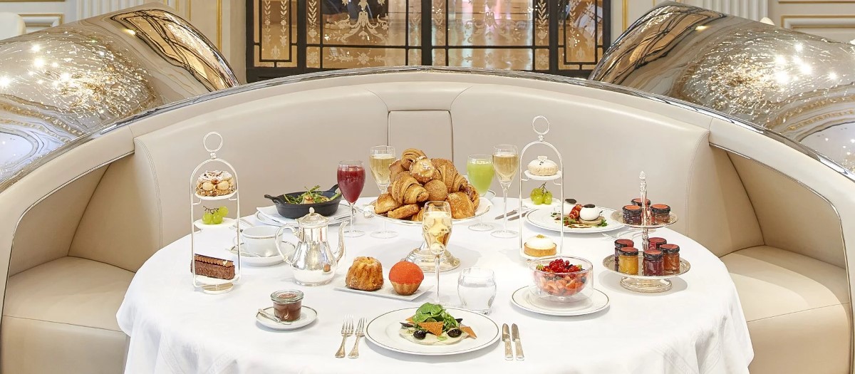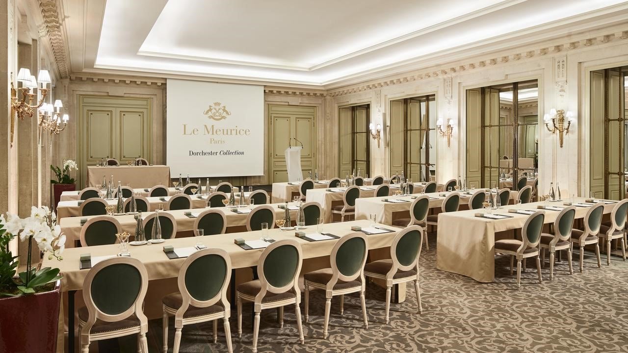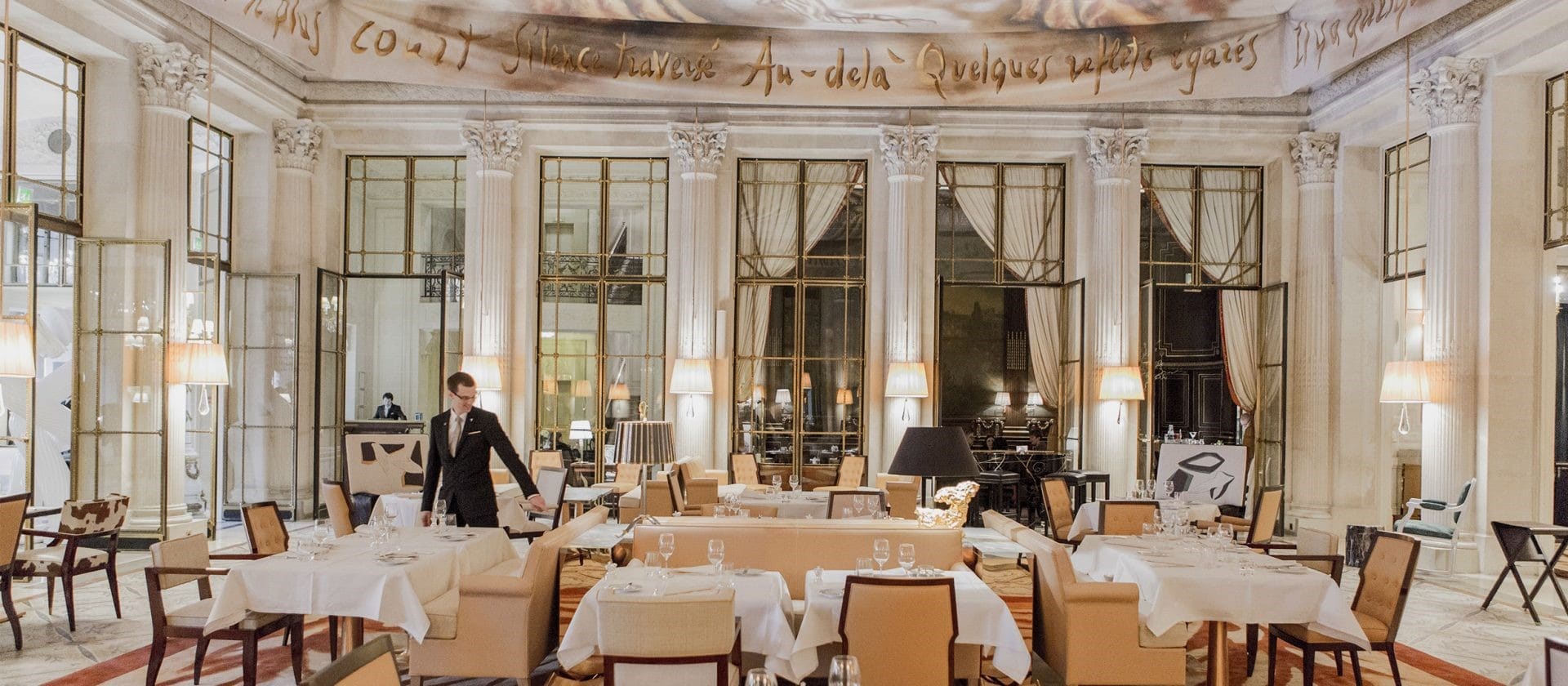 Les tables d’un restaurant à l’hôtel Le Meurice