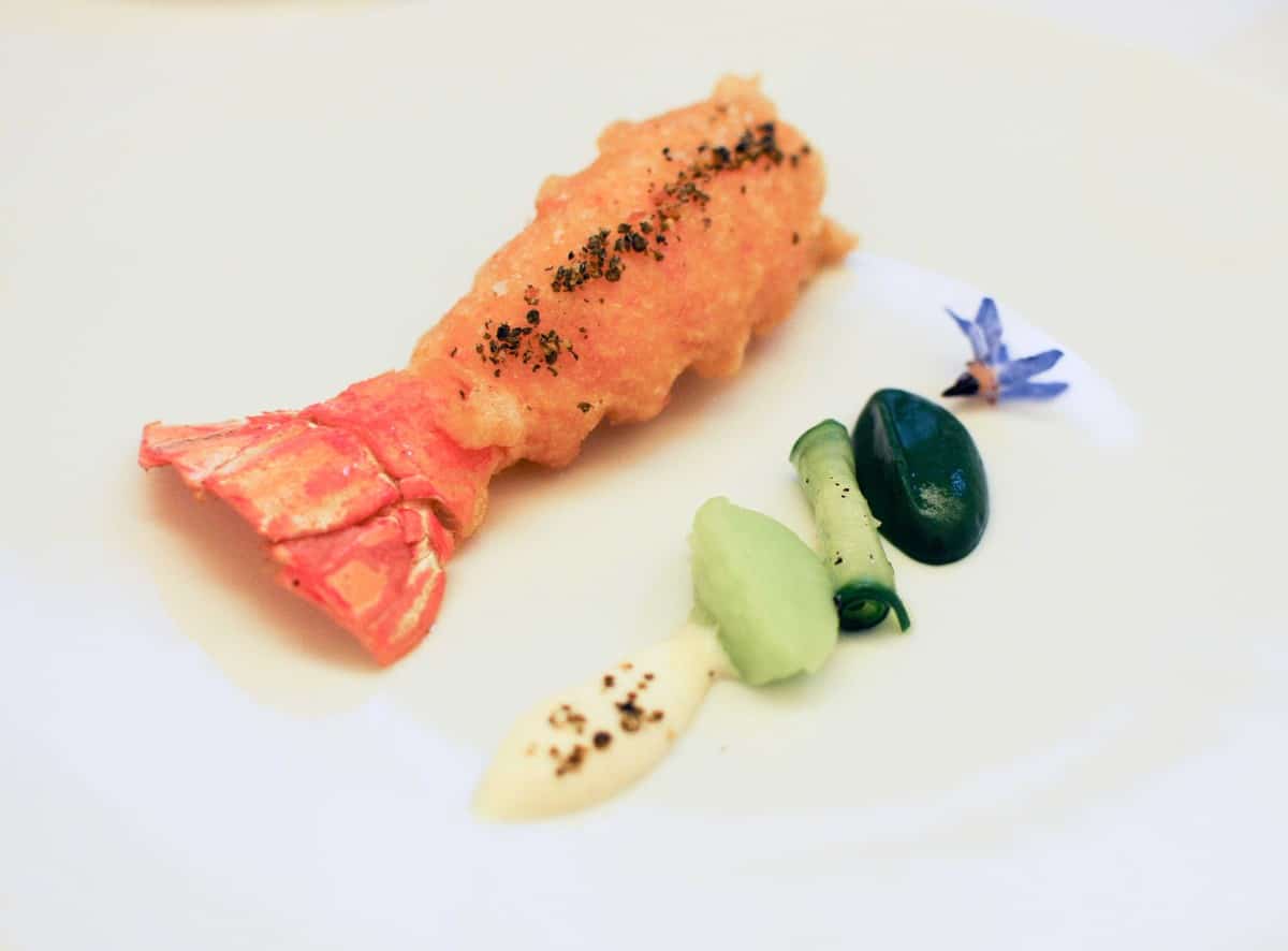 Langoustine au sarrasin torréfié, concombre et menthe poivrée