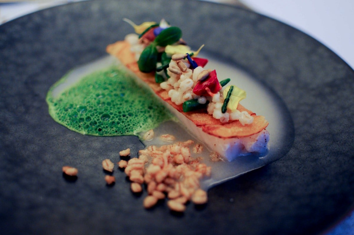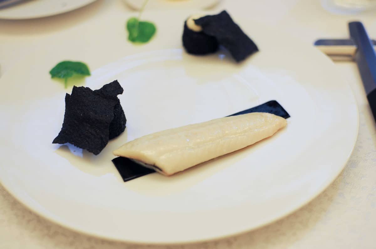 Sole petit-bateau pochée aux algues, polenta « black and white »