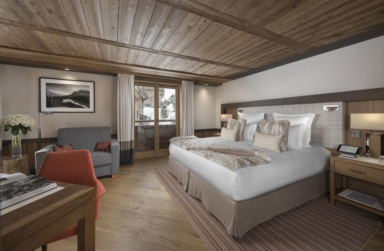 Une chambre de l’hôtel Barrière Les Neiges à Courchevel