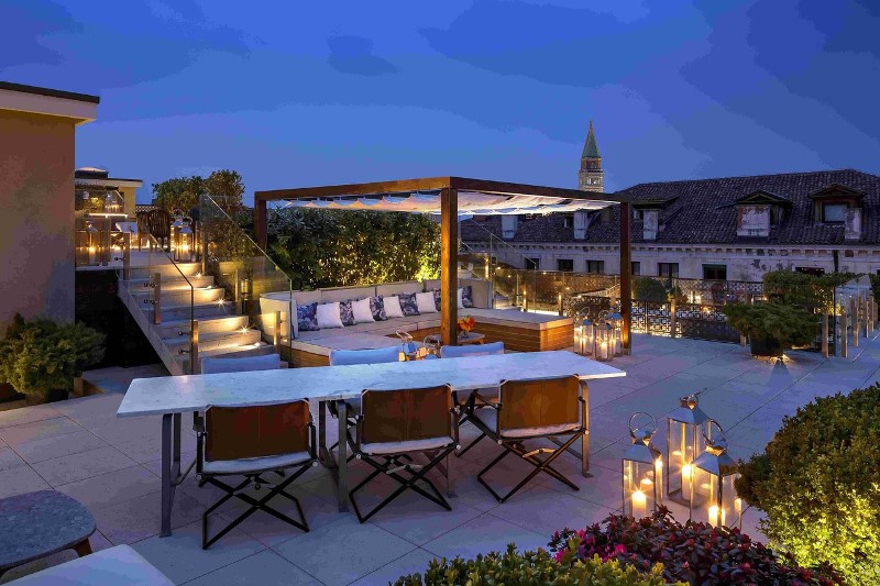 La terrasse sur les toits le soir du palais Gritti