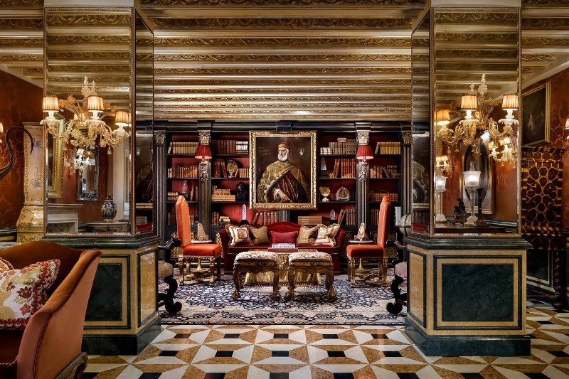 Le salon-bibliothèque du Palais Gritti