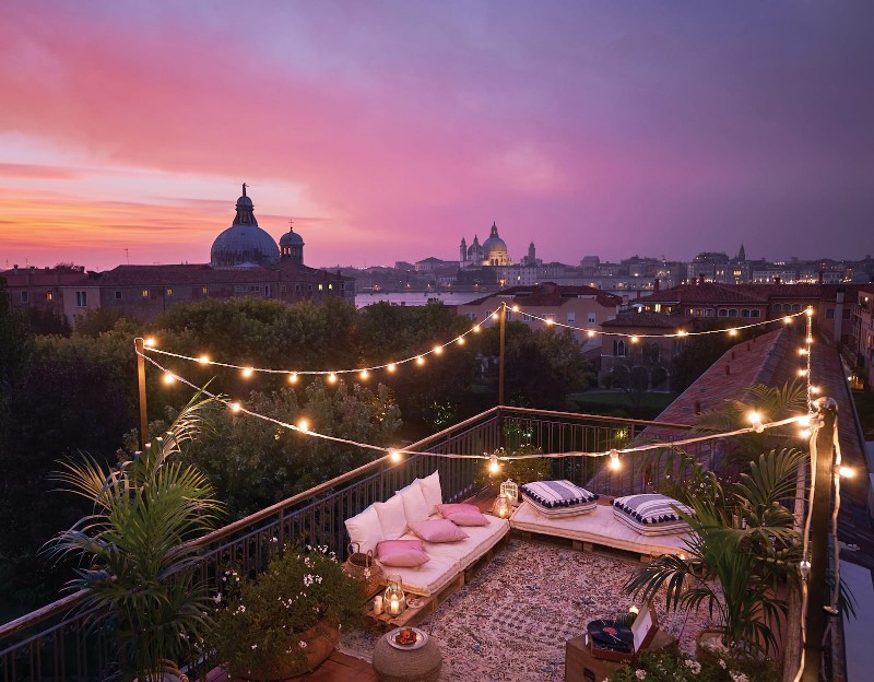 La terrasse sur les toits le soir de l’hôtel Cipriani
