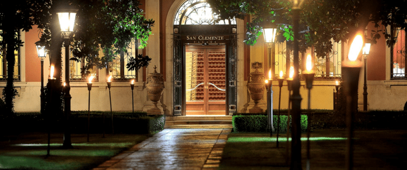 L’entrée de l’hôtel San Clemente Palace Kempinski Venice le soir