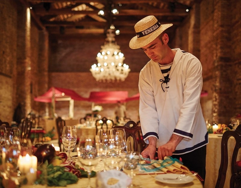 Mise en place d’une table du restaurant de l’hôtel Cipriani