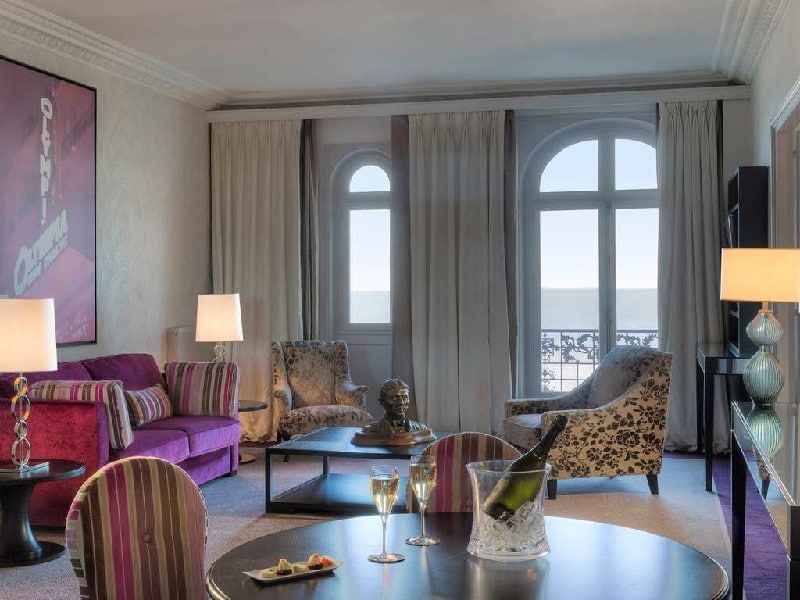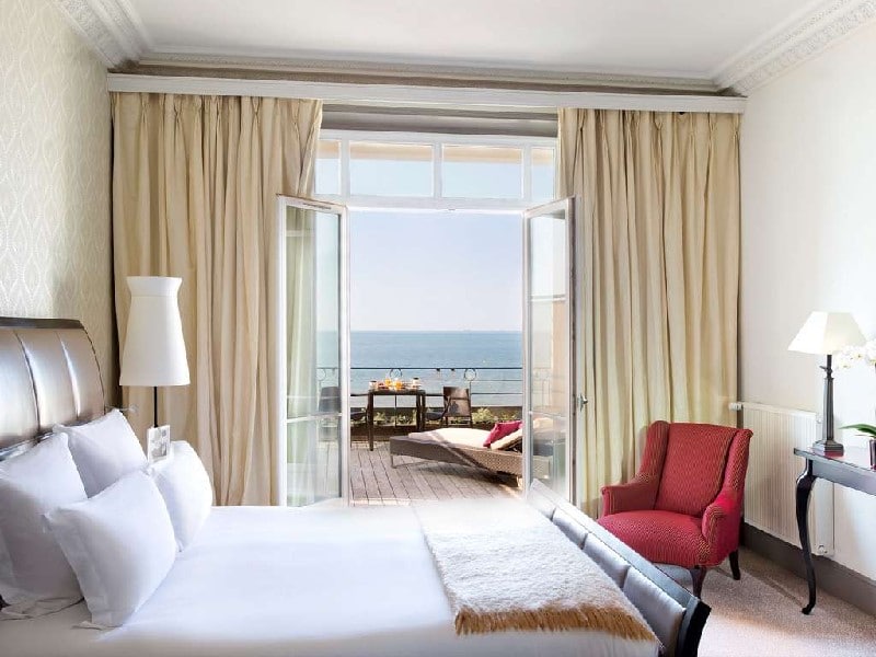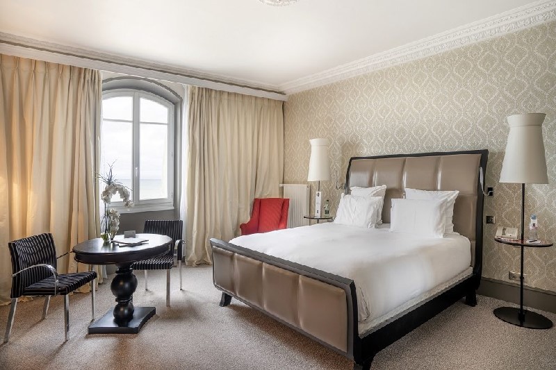 Chambre et terrasse du Grand Hôtel Cabourg vue sur mer