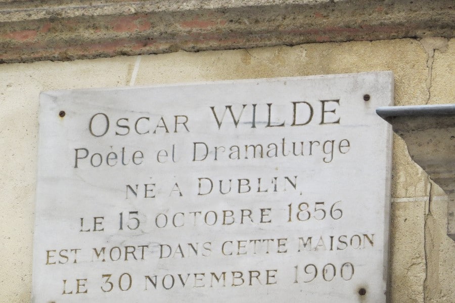 Plaque Oscar Wilde sur la façade de l’Hôtel