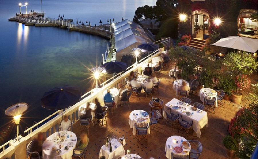 Terrasse du restaurant « La passagère »de l’hôtel Belles Rives le soir
