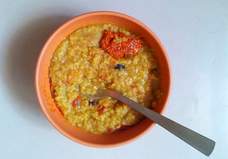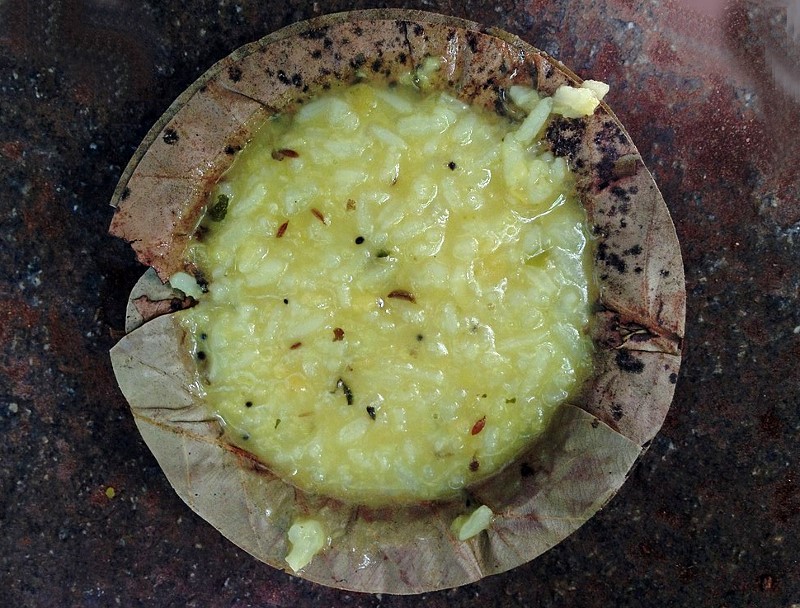 Khichri prasāda du Bengaluru servi dans un bol traditionnel en feuilles d’arec
