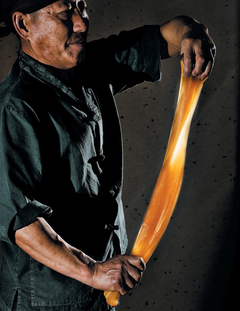 Kkwongnyeot mil gluant et avec de la viande de faisan (꿩엿)