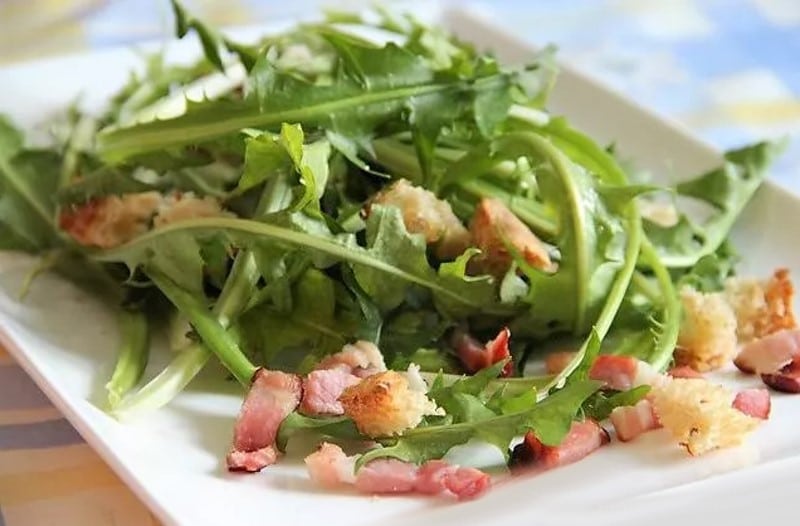 Salade de pissenlits aux lardons et croûtons