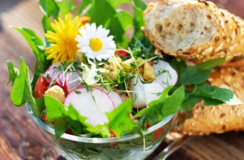 Salade de pissenlits et crudités