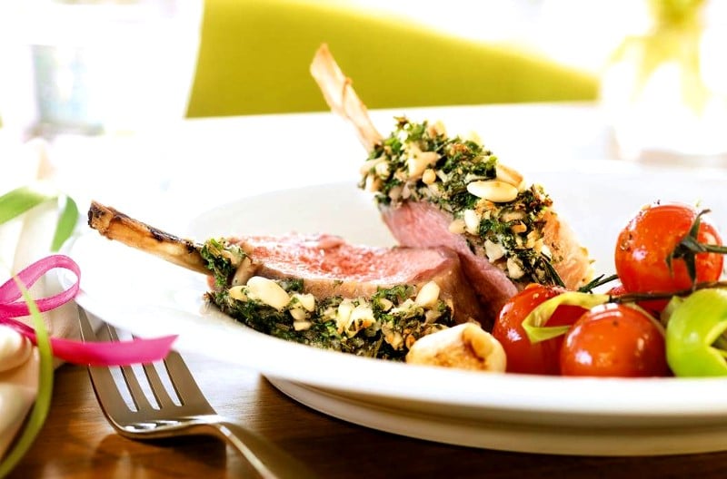 Carré d’agneau en croûte d’ail et d’amandes