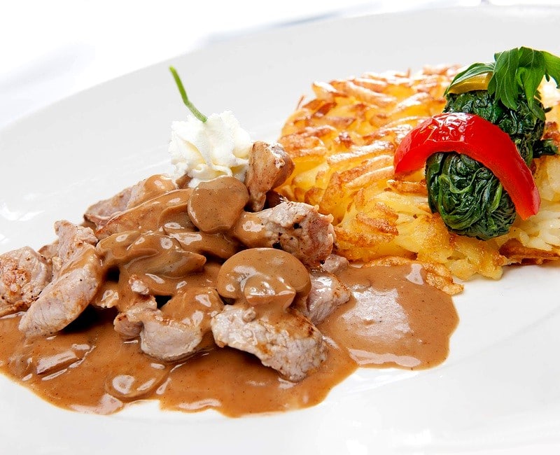 Émincé de veau aux champignons et rösti