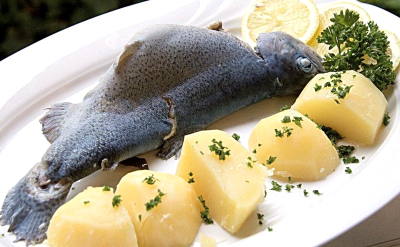 Truite au bleu et pommes vapeur