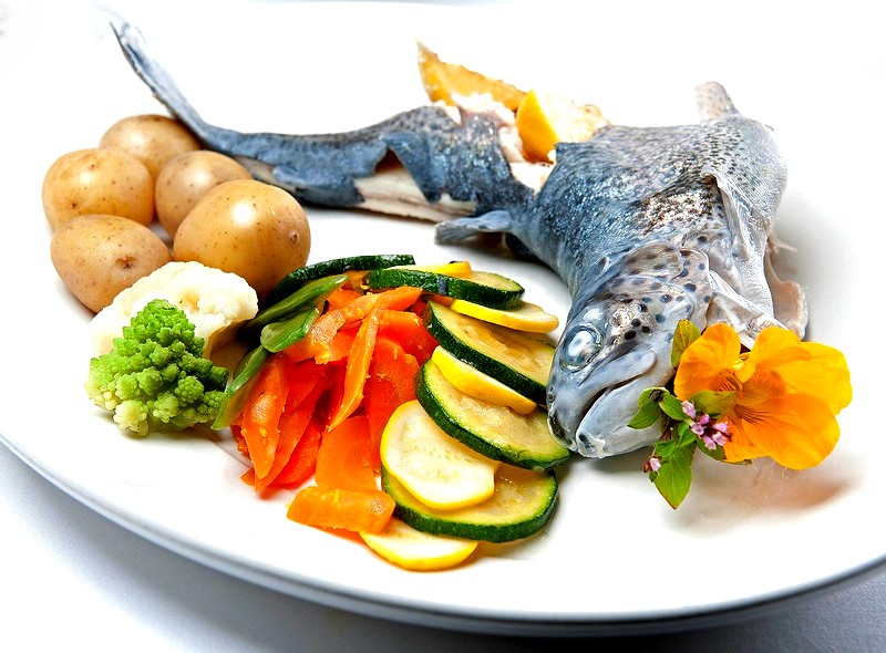 Truite au bleu et sa garniture