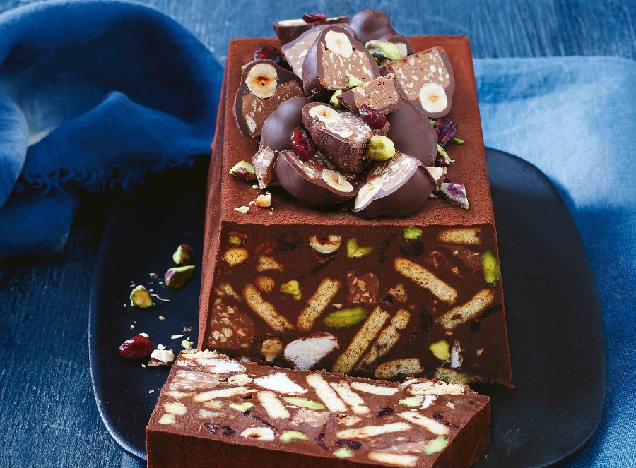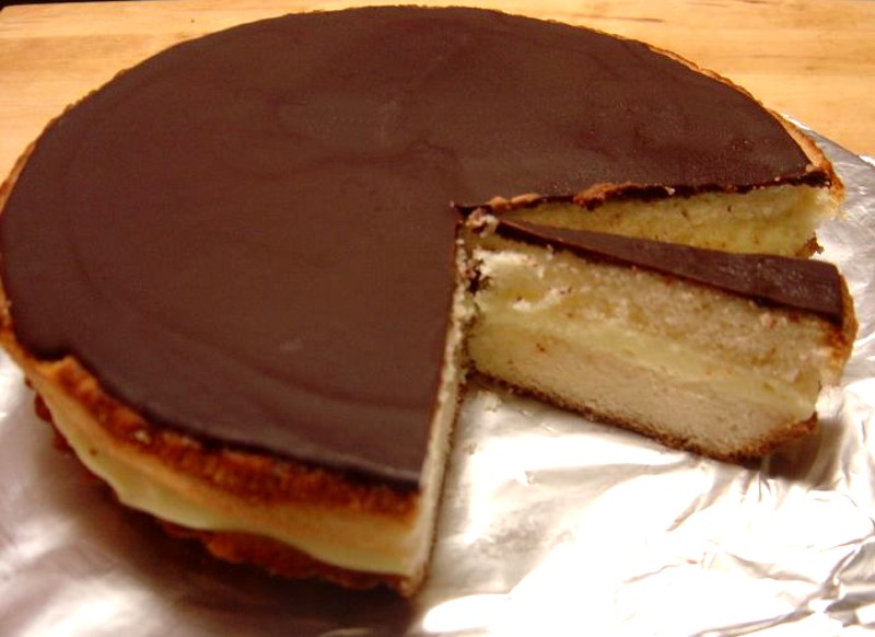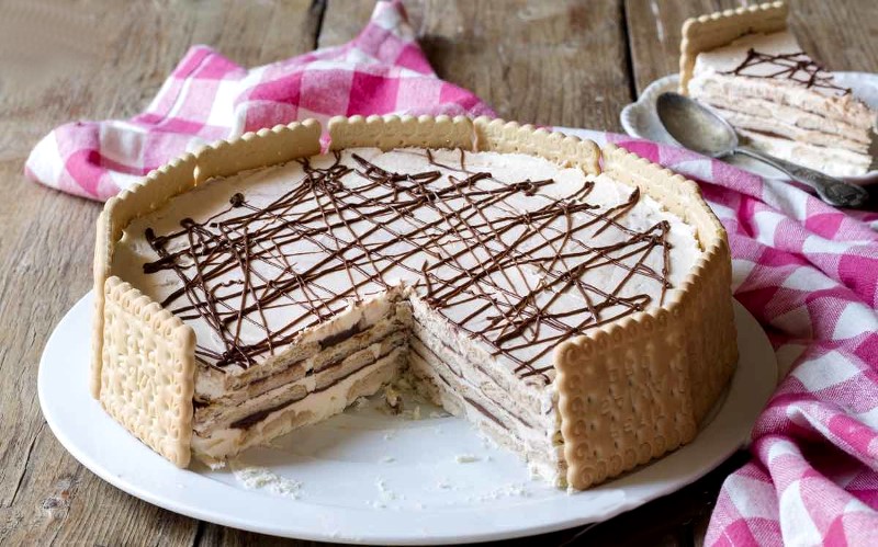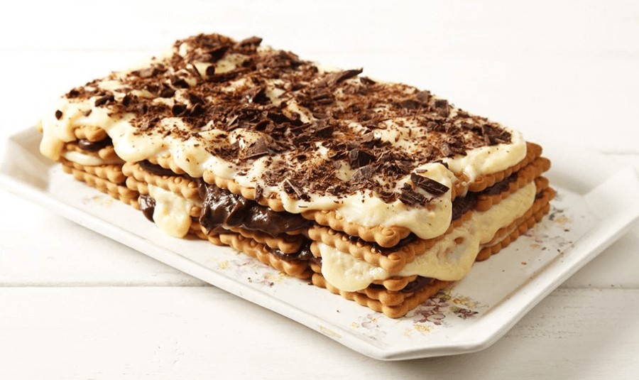 Gâteau aux biscuits secs, crème pâtissière et chocolat